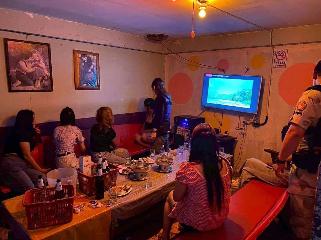 เมื่อเจ้าหน้าที่เข้าตรวจสอบเมื่อ 01.45 น.ที่ผ่านมา พบคาราโอเกะดังกล่าวเปิดบริการในอาคารพาณิชย์ 2 ชั้นครึ่ง มีโต๊ะให้บริการอยู่บริเวณด้านหน้าร้านและมีห้องวีไอพีจำนวน 4 ห้อง รวมทั้งพบมีพนักงานหญิงคอยให้บริการ 13 คน และมีโต๊ะนั่งรวมอยู่ ประมาณ 5 โต๊ะ ขณะนั้นลูกค้าใช้บริการ อยู่จำนวน 3 โต๊ะ