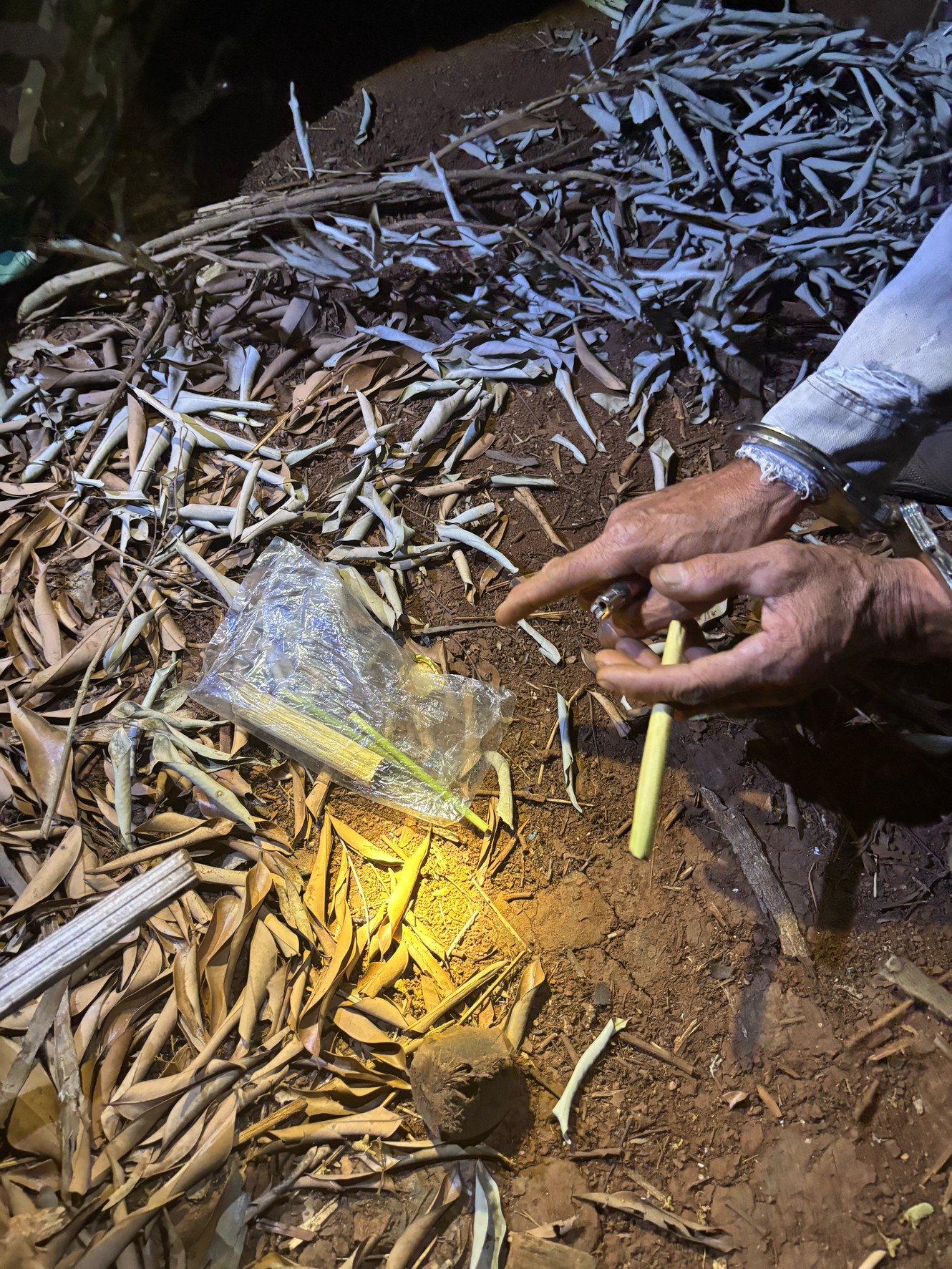 จากการตรวจสอบภายในกระเป๋าเป้ เจ้าหน้าที่ถึงกับผงะเมื่อพบเครื่องกระสุนปืน ทั้งดินปืน แก๊ป และลูกปรายจำนวนมาก นอกจากนี้ยังพบอุปกรณ์สำหรับเสพยาเสพติด ประกอบด้วยก้านสูบไม้ไผ่ ฟอยล์ที่มีร่องรอยการใช้งาน และไฟแช็ก ซุกซ่อนอยู่ภายใน