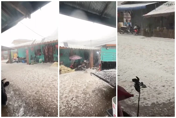 ขณะที่เพจเฟซบุ๊ก “สะใภ้จีนยูนนาน” ได้เผยแพร่คลิปสลดพายุลูกเห็บ-ฝนตกกระหน่ำบนดอยอ่างขาง อ.ฝาง จ.เชียงใหม่ อย่างหนัก จนขาวโพลนไฟทั่วทั้งหลังคาบ้านเรือน ลานกว้าง และพื้นถนน เหมือนหิมะตกจริง