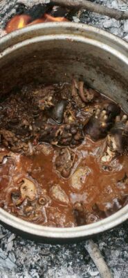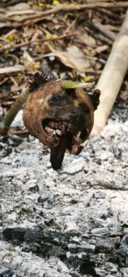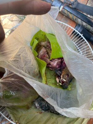 สืบเนื่องจากเมื่อคืนวันที่ 22 เม.ย. ที่ผ่านมา เจ้าหน้าที่สังเกตเห็นแสงไฟฉาย 3 ดวง วิ่งไปมาบนสันเขาห้วยแม่กิ๊กหลวงซึ่งอยู่ใกล้จุดเกิดไฟป่า จึงวางแผนดักซุ่มตลอดทั้งคืน จนกระทั่งช่วงสายวันนี้ เจ้าหน้าที่ได้เข้าตรวจค้นบริเวณริมลำห้วย พบชาย 3 คน กำลังนั่งล้อมวงรับประทานอาหาร เมื่อเข้าตรวจสอบถึงกับตะลึง พบกลุ่มชายดังกล่าวกำลังกินแกงเนื้อสัตว์ป่า และมีหัวสัตว์อีเห็นเสียบไม้ย่างไฟอยู่