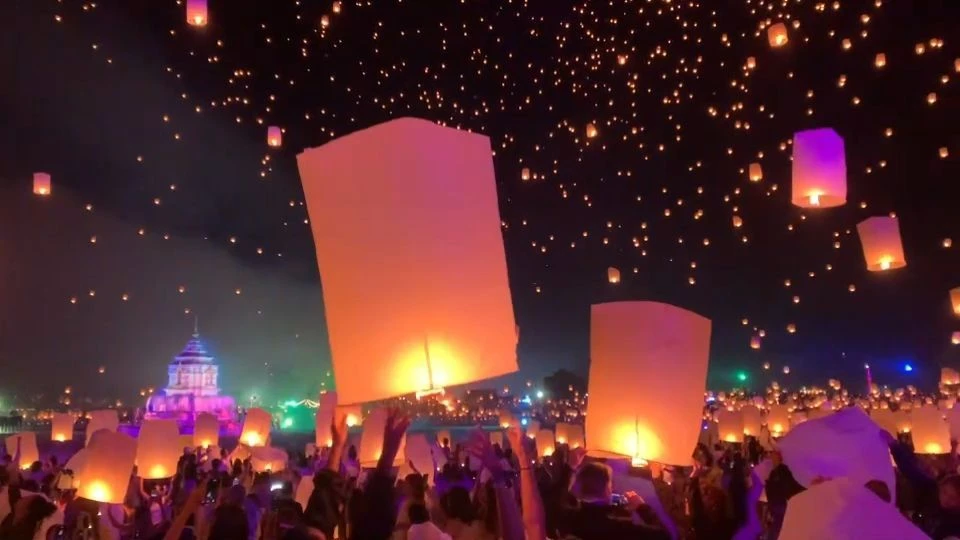 ท้องฟ้าเหนือเชียงใหม่สุดสวย โคมลอย-พลุ นับหมื่นฉลองสู่ปีใหม่ 2569