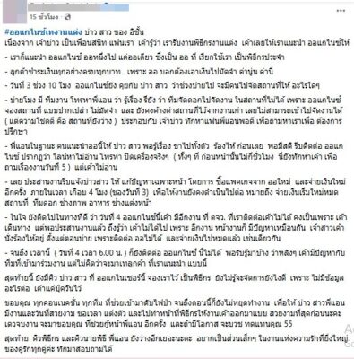 จนเช้าเมื่อวานนี้ (4 ม.ค.) เธอก็ยังติดต่อออร์แกไนซ์ไม่ได้ และมาทราบว่า หลังๆ ออร์แกไนซ์คนนี้มีปัญหากับทีมที่เข้ามาร่วมทำงาน แต่ไม่คิดว่าจะมาเทลูกค้าแบบนี้