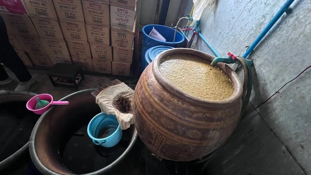 ภายในบ้านพบอุปกรณ์การผลิตจำนวนมาก ทั้งโอ่งผสมยาน้ำสมุนไพร เครื่องบรรจุ และฉลากผลิตภัณฑ์ พร้อมขวดบรรจุยาน้ำสมุนไพรยี่ห้อยาบำรุงธาตุฯ ยาแผนโบราณ ทะเบียนเลขที่ G 21/40