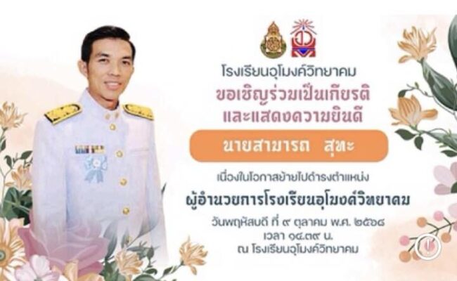 “ขอแสดงความยินดีกับผอ. สามารถ สุทะ ในวาระย้ายจากโรงเรียนบ้านศรีป้าน มาดำรงตำแหน่งใหม่ระดับมัธยมที่โรงเรียนอุโมงค์วิทยาคม “