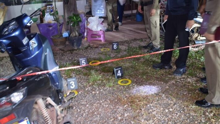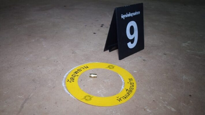 ตรวจพบปลอกกระสุนปืนขนาด 9 มม. ตกอยู่บนพื้นหญ้าหน้าร้านและภายในร้าน รวม 9 ปลอก และหัวกระสุนอีก 1 นัด นอกจากนี้ ยังมีรอยกระสุนทะลุเข้าไปในร้านถูกลังเบียร์จนขวดแตก ส่วนมือปืนที่ก่อเหตุคือ นายสนิท (ขอสงวนนามสกุล) อายุ 38 ปี รอมอบตัวกับเจ้าหน้าที่อยู่ในที่เกิดเหตุ พร้อมกับอาวุธปืนพกขนาด 9 มม. ที่ใช้ในการสังหาร