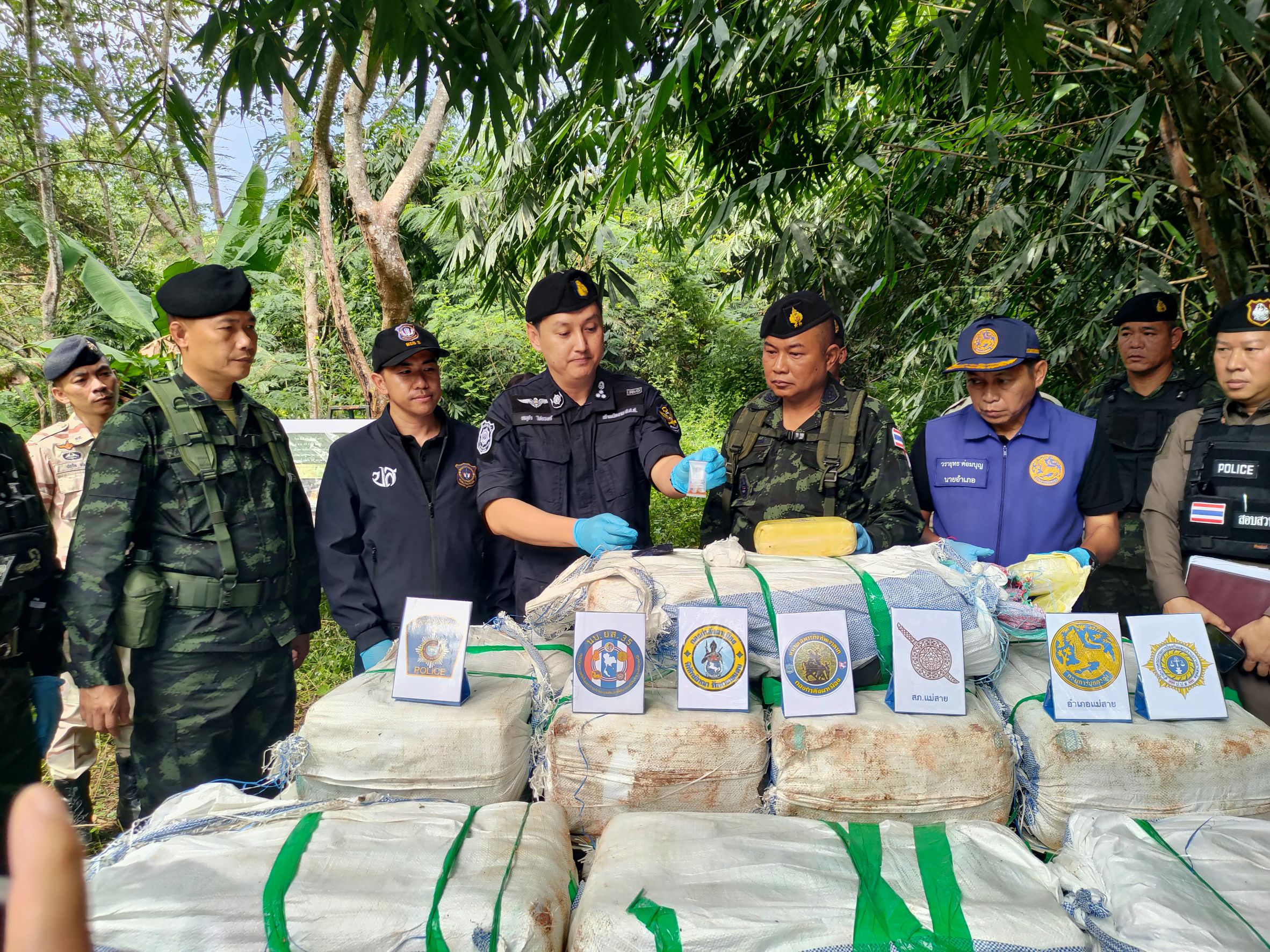 เวลา 12.30 น. ของวันเดียวกัน พลตรี สาธิต ไวยนนท์ ผู้บัญชาการกองกำลังผาเมือง ได้ลงพื้นที่ตรวจสอบของกลางร่วมกับ พันเอก สุพรรณ ร้อยพุทธ ผู้บังคับหน่วยเฉพาะกิจทัพเจ้าตาก และหน่วยงานที่เกี่ยวข้อง พร้อมให้ข้อมูลแก่สื่อมวลชน ณ พื้นที่เกิดเหตุ และนำยาเสพติดทั้งหมดส่งมอบให้ สภ.แม่สาย ดำเนินการตามกฎหมาย